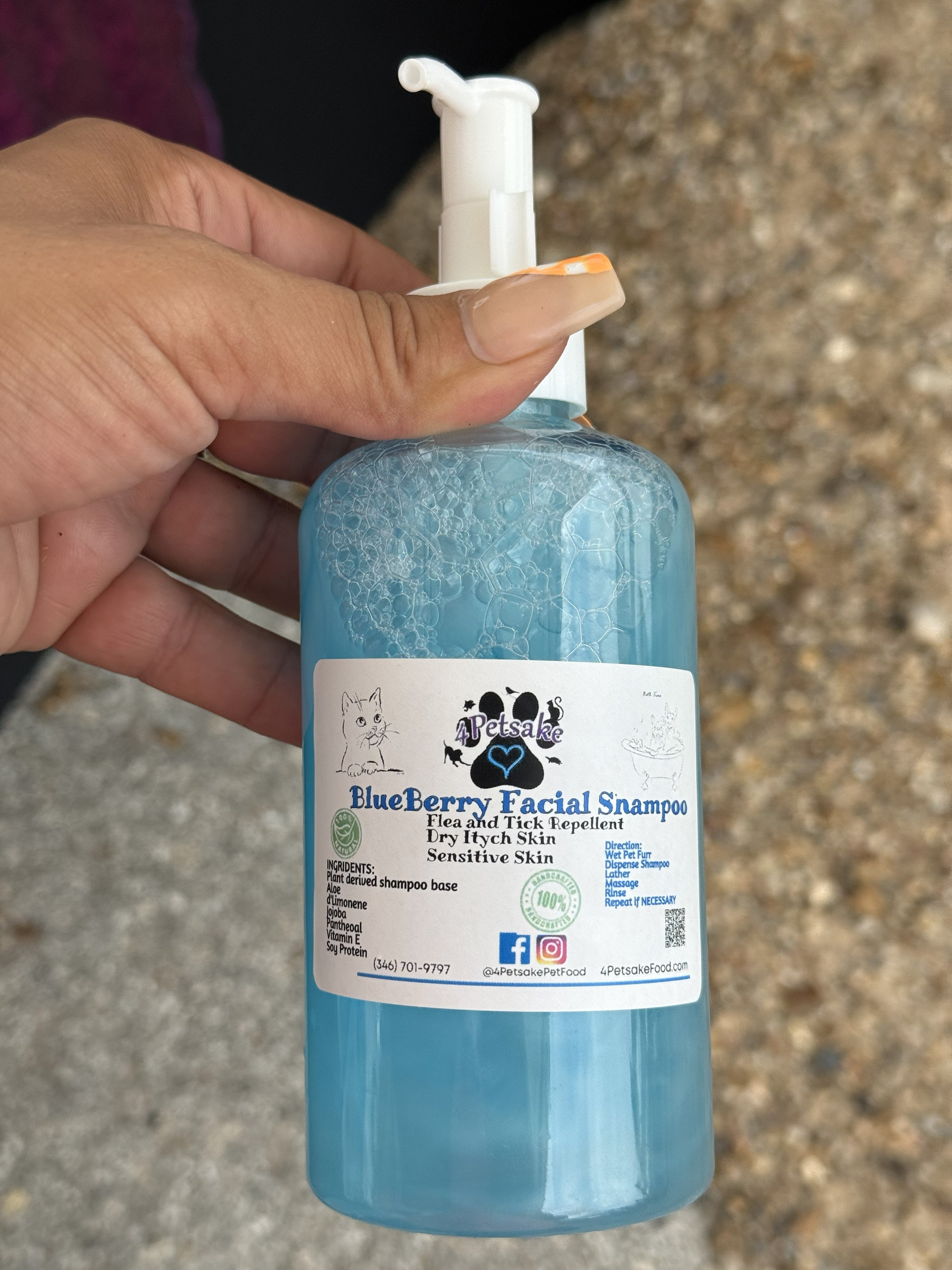 4Petsake’s Blueberry Facial Shampoo is made with a plant-derived shampoo base and specially formulated to gently cleanse the face, muzzle, and eye area without irritation. This mild formula helps remove dirt, food residue, and tear stains while being gentle enough for delicate and sensitive skin.
